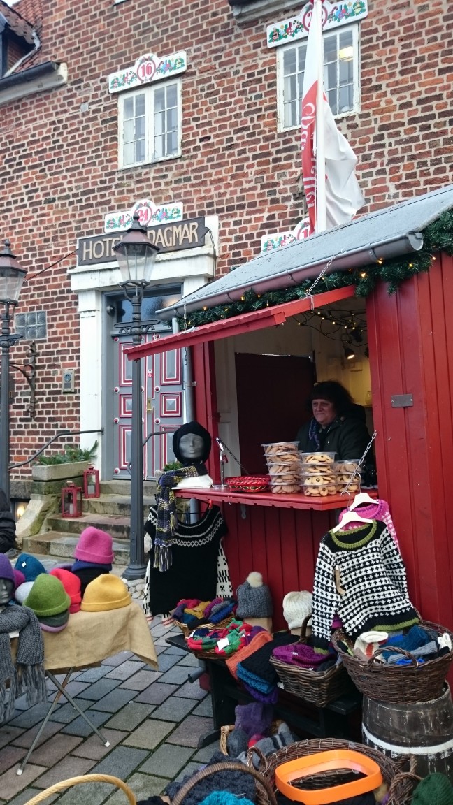 Etwas südlicher, fast an der Deutsch-Dänischen-Grenze, liegt Tønder. Tønder ist über die Landesgrenzen hinaus bekannt für seinen Weihnachtsmarkt. In der Mitte der Fußgängerzone sind viele Weihnachtshütten aufgebaut. Es gibt selbst gestaltete Weihnachtsdekoration, Gløgg, Æbleskiver und sogar eine Schlittenrutschbahn. Als wir den Weihnachtsmarkt besucht haben, war das Wetter leider sehr wechselhaft. Einen Regenschauer nutzten wir, um uns in der alten Apotheke (Det Gamle Apotek) umzusehen. Det Gamle Apotek ist ein Dekorationsgeschäft der besonderen Art. Hier findet man alles was das Dekoherz begehrt. Jetzt zur Weihnachtszeit ist fast die komplette untere Etage im Weihnachtsfieber. Für die Kinder gibt es mitten im Geschäft, das Postamt des Weihnachtsmanns, wo sie ihren Wunschzettel abgeben können. Selbstverständlich bin ich nicht ohne Tüte aus dem Laden gegangen.