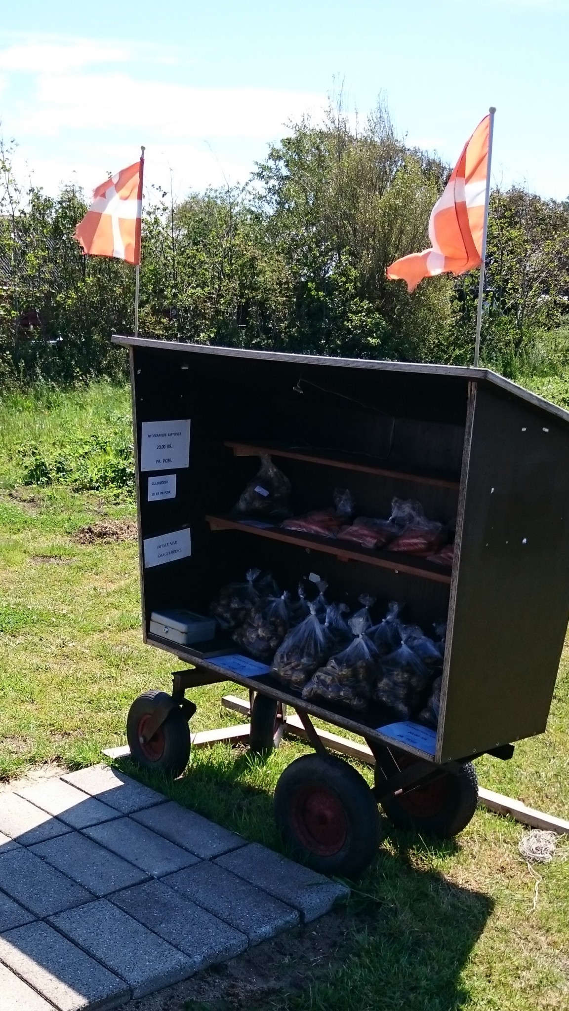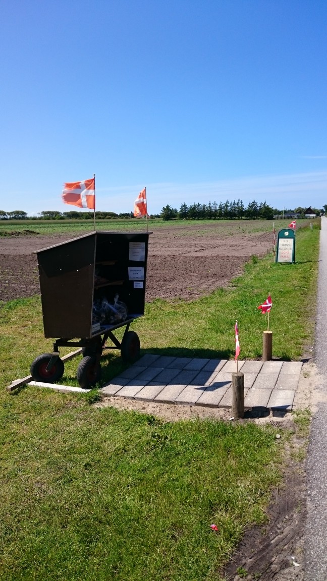Wenn man auf Dänemarks Landstraßen fährt, entdeckt man an fast jeder Ecke einen kleinen privaten Verkaufsstand. Meist ist es ein kleiner Holzüberstand, mit einer dänischen Flagge, an dem es Brennholz, Kartoffeln, Gemüse, Obst, selbstgemachten Honig, Marmelade odre sogar gebrauchte Bücher gibt. Im Stand steht dann eine kleine Geldkassette, die nicht sonderlich sicher angebracht ist. Auch hier vertrauen die Dänen darauf, dass die Kunden ihre Waren anständig bezahlen und nichts klauen. Die Vielzahl der Stände lässt mich in dem Glauben, dass dieses System gut klappt.